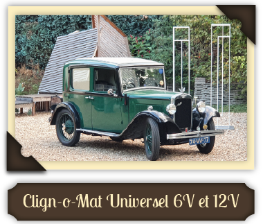 Le Clign-o-Mat est une solution ancienne mais utilisant une technologie moderne. Il est monté dans un endroit discret, par exemple sous le capot ou dans le coffre. Pour les Citroën 2CV et Traction Avant ainsi que pour les Renault 4CV, Juvaquatre et Dauphine, il est fourni avec faisceau de câbles adapté vers les feux arrière. Pour les autres voitures classiques ou anciennes nous fournissons un Clign-o-Mat universel en 6 ou 12 volts, avec des attache-câbles en plastique, vis ainsi que des instructions de montage claires.